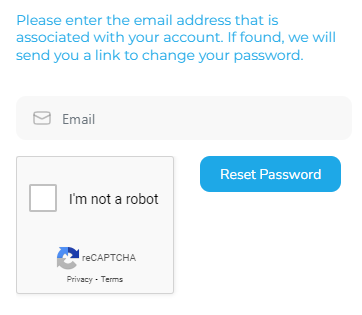 - Enter the registered email address, prove you aren’t a robot, and click the Reset Password button. If your email is in our system, you’ll get a link to reset your password. (Before you contact us, please check your spam folder).